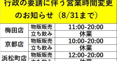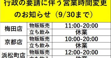 ※梅田店の龍力フェアは9/5-となります。※京都店の雪彦山フェアは「蒼空フェア」に変更となります。※三ノ宮店の雪彦山フェアは 8/29-、灘菊フ…