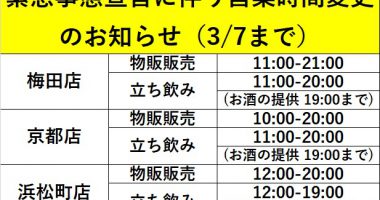 ※※※今代司フェアの日程が若干変更になりました。※浜松町店の若駒フェアは7/12金-19金となります。※三ノ宮店の豊能梅フェアは6/28金-7/4木…