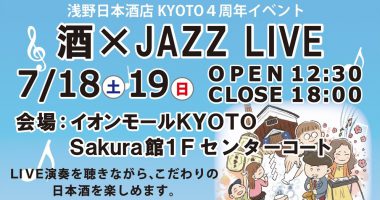 【申し訳ありませんが、コロナ情勢等を鑑み、中止となりました】おかげさまで7/15に京都店は4周年を迎えます!感謝の気持ちを込めて、JAZZの…